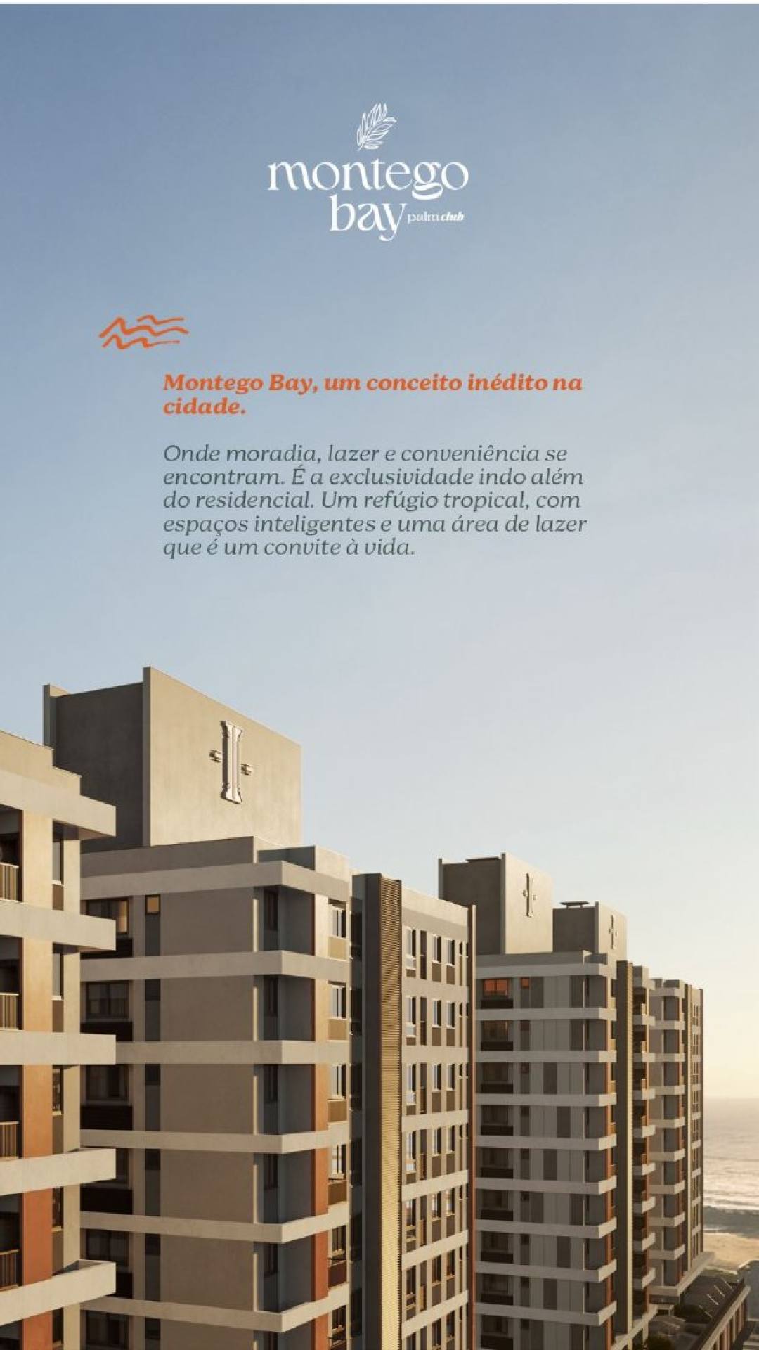 Montego Bay, um conceito inédito na cidade, onde moradia, lazer e conveniência se encontram. É a exclusividade indo além do residencial. Um refúgio tropical, com espaços inteligentes e uma área de lazer que é um convite à vida.